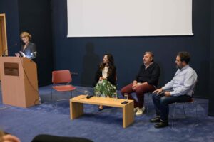 Την εκδήλωση χαιρέτησε επίσης η δημοσιογράφος Κατερίνα Λυμπεροπούλου, η οποία ανέφερε πως «Με πυξίδα το έργο του Robert McCabe δουλέψαμε οι συγγραφείς της έκδοσης ” Η Ελλάδα μετά τον πόλεμο. Τα χρόνια της ελπίδας” (Εκδ. Πατάκη/ AbbevillePress, 2023) στην πολύμηνη, τόσο αποδοτική κι αξέχαστη συνεργασία μας – πόσο μεγάλη τιμή, αλήθεια, να δουλεύω μαζί με τον RobertMcCabe και τον καθηγητή του Harvard, Πρόεδρο του Ευρωπαϊκού Πολιτιστικού Κέντρου Δελφών, Παναγιώτη Ροϊλό! Κι έχοντας τη σημασία αυτής της παρακαταθήκης του έργου του Robert κατά νου, συνέλεξα μαρτυρίες Πατρινών, αναμνήσεις “από πρώτο χέρι”, αλλά κι ιστορίες που άκουσαν από άλλους σχετικά με την, μεταπολεμικά δημιουργηθείσα, Πορθμειακή γραμμή Ρίου – Αντιρρίου για να πλαισιώσω με κείμενα την σειρά φωτογραφιών του Robert από την εν λόγω γραμμή. Ένα πρωτότυπο και ξεχωριστό τμήμα της έκθεσης στο Αρχαιολογικό Μουσείο Πάτρας που δεν θα ταίριαζε πουθενά αλλού τόσο καλά όσο εδώ».