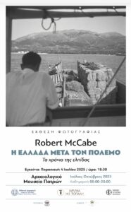 Η έκθεση που εγκαινιάστηκε στις 4 Ιουλίου και διοργανώνουν το Ίδρυμα Τοπάλη, από κοινού με το Εθνικό Ιστορικό Μουσείο και η Εφορεία Αρχαιοτήτων Αχαΐας, περιλαμβάνει μεταξύ άλλων ανέκδοτες φωτογραφίες από το αρχείο McCabe για το πορθμείο Ρίου Αντιρρίου, ενώ ξεχωριστή θέση κατέχει το σύγχρονο έργο του καλλιτέχνη Γιάννη Παπαδόπουλου “SOIL/TOIL, Χώμα/Μόχθος”, που προτείνει έναν διάλογο με το έργο του διάσημου αμερικανού φωτογράφου.